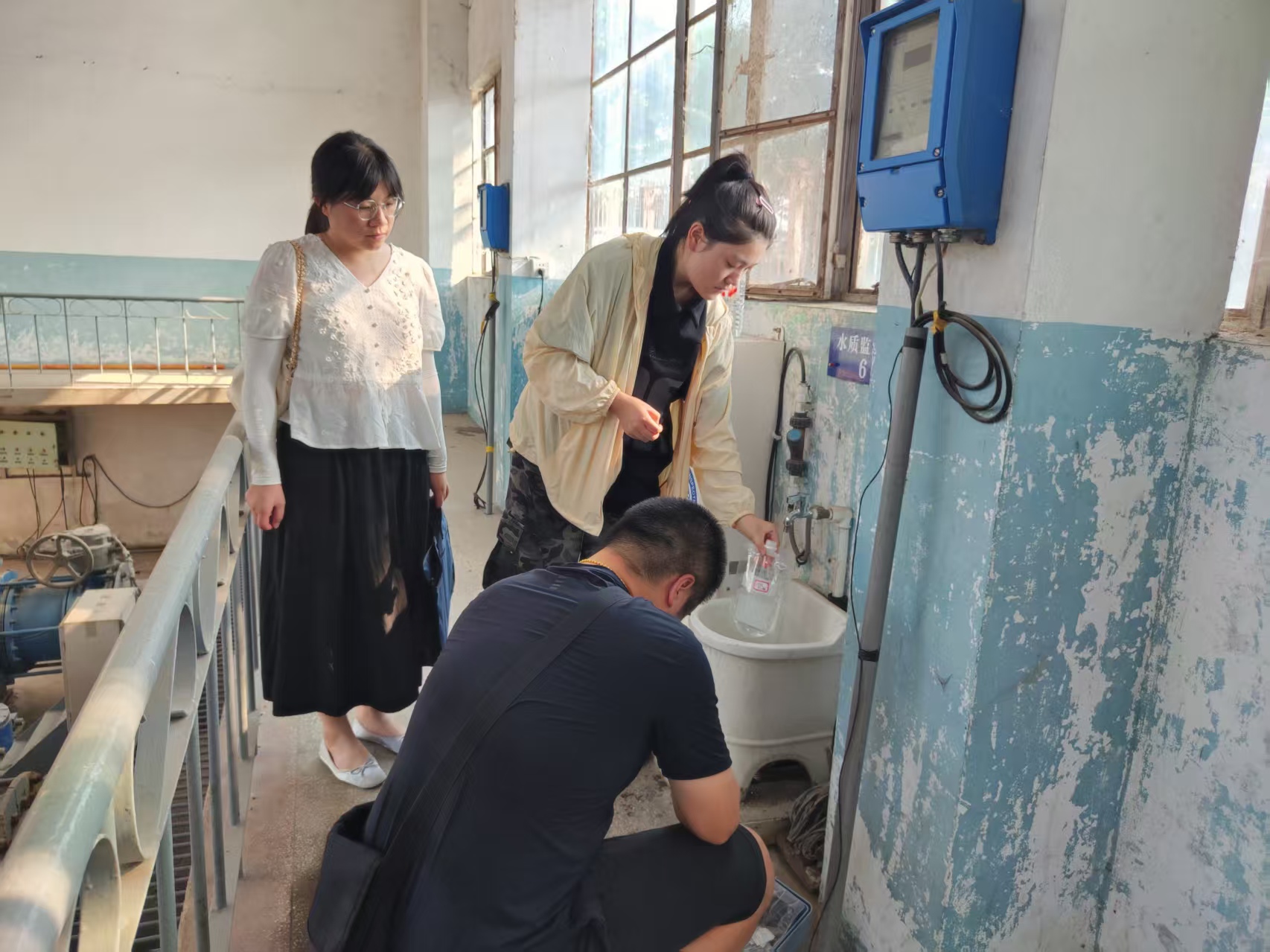 近日,随州市审计局在开展该市某国有供水公司资产负债及运营情况审计时,重点关注供水水质管理。审计组通过查阅相关许可证、材料设备采购、水质检测报告等资料,实地查看水质检测取样过程和水厂加药间、过滤池等设备设施运营管理情况,核查供水公司是否依法取得取水许可证和卫生许可证,消毒、沉淀、排废等关键设备设施是否完善并有效运行,水质检测制度是否建立并严格执行等内容,促进供水公司规范生产运营,保障公众用水安全。图为审计组实地查看水厂和水质取样流程。